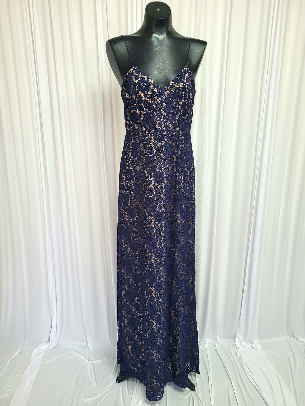 Donna Morgan Navy Blue/Pink Lace Prom Dress